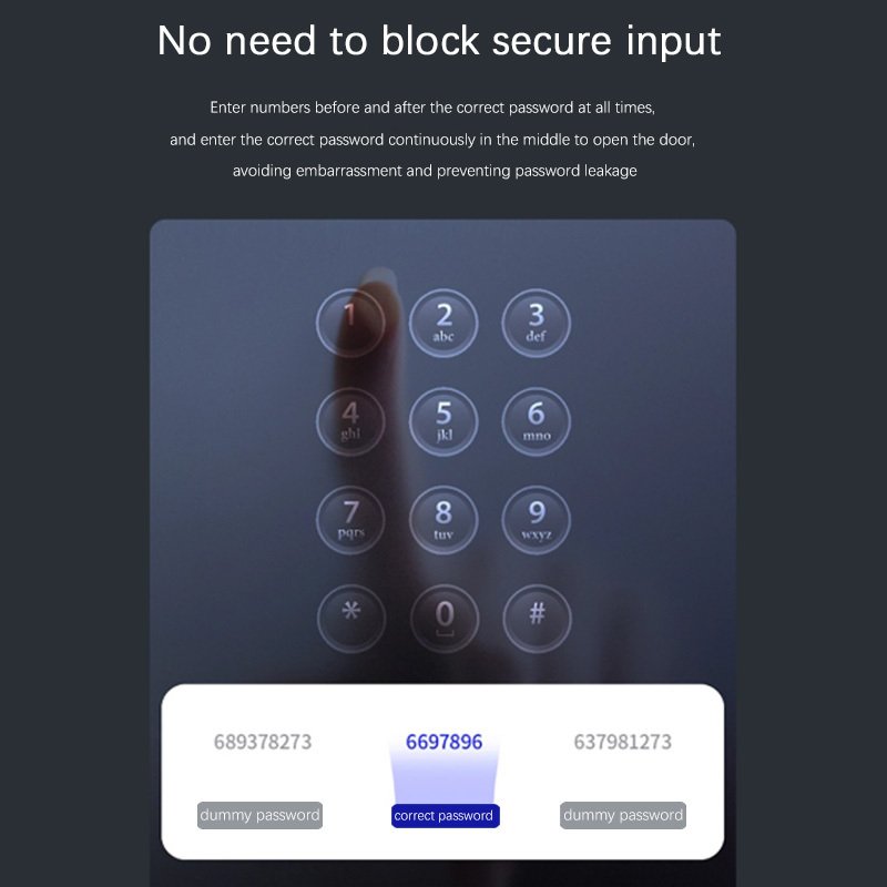 To reduce the risk of someone watching your code, J18 supports an anti peeping virtual password feature. This lets you enter random numbers before or after the real password so observers cannot easily guess the correct code.