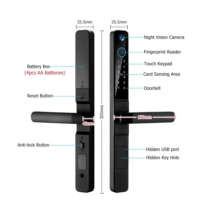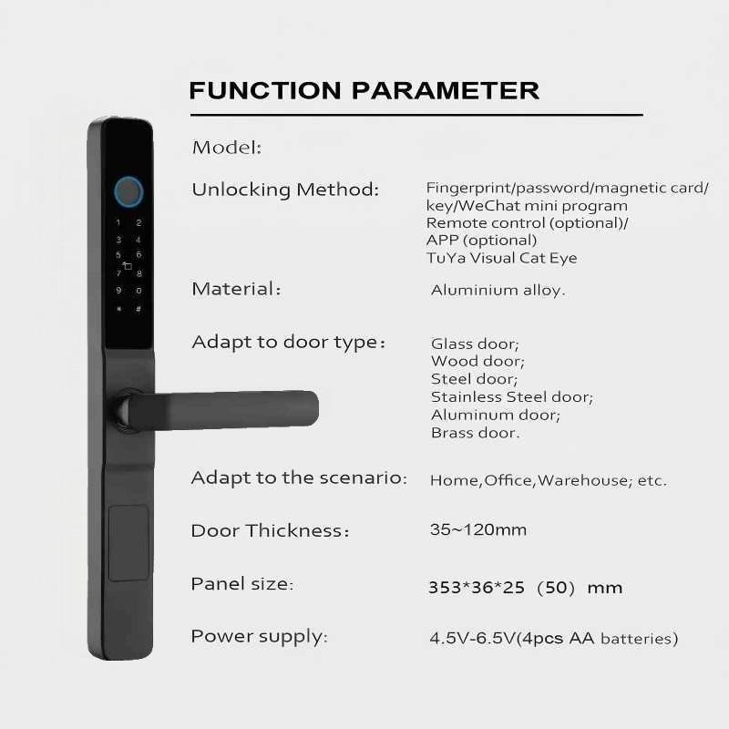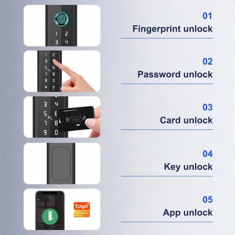 Unlocking Methods: Fingerprint, Password, Card (M1/IC), Mechanical Key, App (optional)