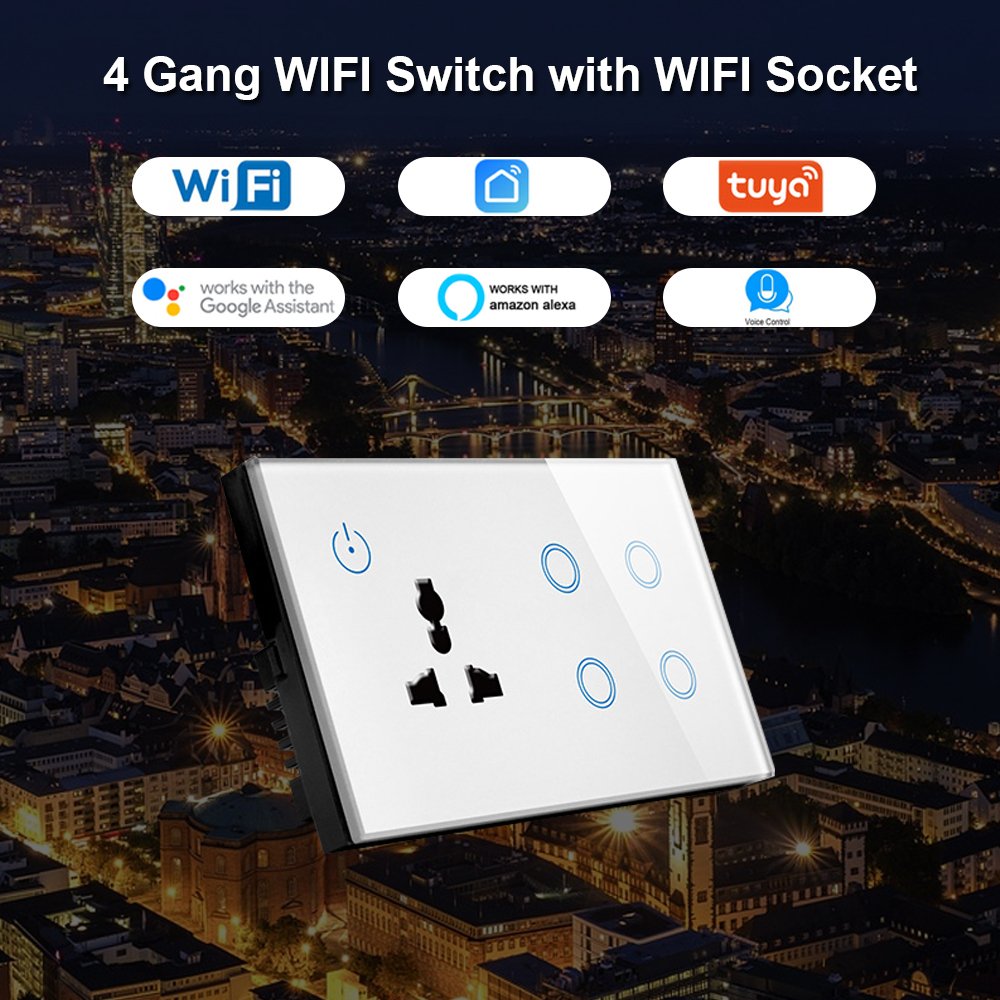 • 1 × Tuya 4 Gang WiFi Touch Switch Socket Panel